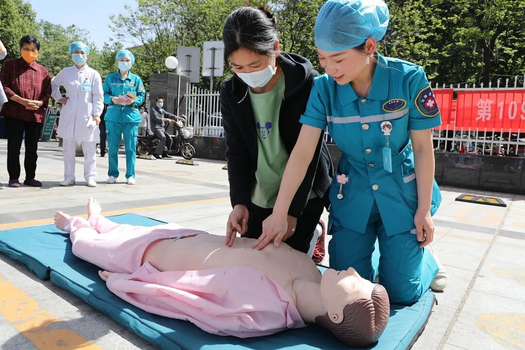 互动环节,在护士耐心、专业、手把手的指导下,市民积极踊跃地参与到活动中,体验了心肺复苏的整个过程,学习了相关急救技能,医护人员向市民发放宣传资料,讲解外伤、溺水等意外情况下的其他急救技能,并对大家提出的问题答疑解惑。