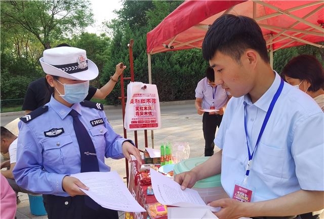本网讯(王站峰 申楠)为进一步加强辖区交通安全宣传教育工作,提高群众交通安全意识,提升安全防护水平,实现“减量控大”目标,5月14日下午,市直公安局交警七大队结合当前“一盔一带”安全守护行动,深入辖区颐龙湾社区开展交通安全宣传活动。