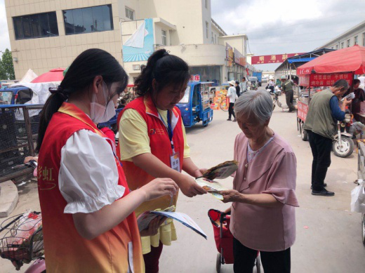 (太谷区社区戒毒社区康复服务中心彩虹禁毒社工在太谷区城西农贸市场给来往居民发放宣传单)