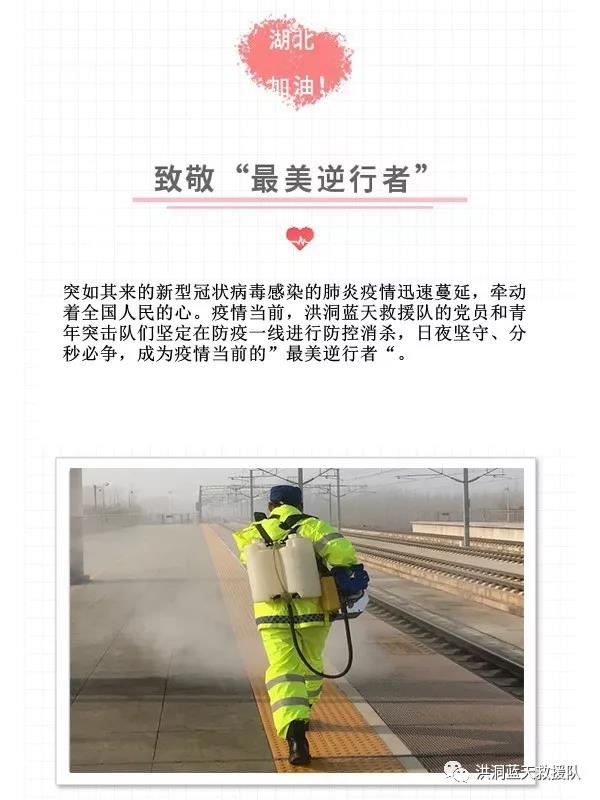 本网讯(张财财)在全员展开疫情阻击战的行动中,2月2日至今,洪洞蓝天救援队临时党支部在团县委、民政局和县疫情防控领导组的支持和指导下,十六天来,义务在公共活动场所、各劝返点、车站、银行、居民小区、机关企事业单位进行防疫知识宣传和消杀。截止2月17日,已累计完成380余家的防疫消杀,累计参加党员65余人次,青年突击队员250余人次,消杀面积达3849950平米。疫情不退,蓝天使命不止,在彻底打赢疫情阻击战之前,洪洞蓝天人的脚步将不会停止。