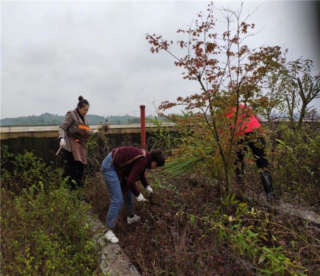 由于下过雨后花园的地面湿滑,清理起来非常不便,但大家毫无怨言,镰刀、木锯齐上阵,清除杂草不余遗力。清理之后又将又湿又沉的杂草打包运走。此次活动拔除了花园杂草、清理了废弃的花盆、对卫生死角也进行了彻底的清扫。大家劳作时衣服被泥土弄脏了,手也被带刺的杂草扎破了,但想着能为“创文”工作做出一点贡献,心里也是无比欣慰。清扫后的花园变得整洁又漂亮,让人眼前一亮。