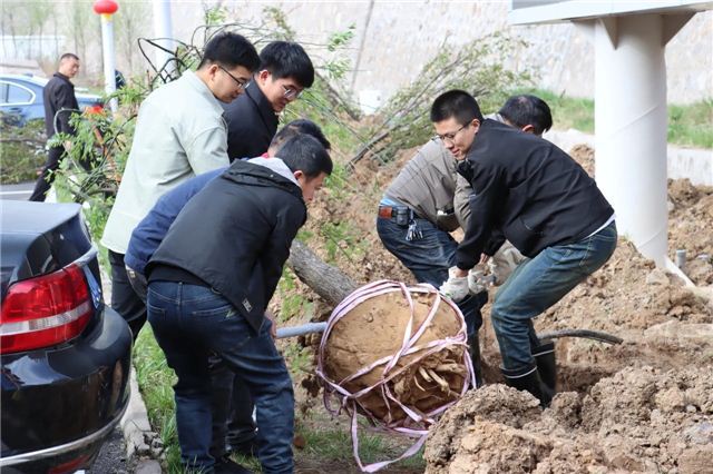 此次植树造林各部门采取“树木认领”的方式,肩负日常养护职责,在现场参与植树的每一名干部职工都兴致高昂,党支部书记、总经理田龙以身作则,埋头苦干,各位党员干部们也充分发挥了自己的带头作用,引领职工们有序的开展种树工作。大家分工明确、配合默契,挖坑、扶苗、培土、踩实、浇水,合力栽下一株株树苗,在阳光下焕发出勃勃生机。众人纷纷表示,将争做绿色发展理念的传播者、倡导者和践行者,为生态文明建设增添“绿色动力”。