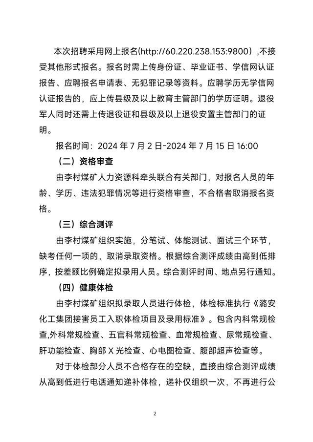 李村煤矿2024年招聘井下一线生产操作岗位人员公告