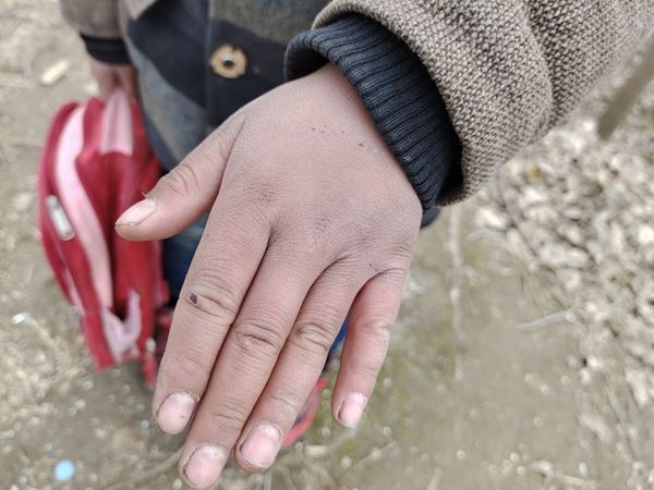 见到欣欣第一面时,让孙合理特别心疼。10岁的他在冷风中倚在学校附近路边一颗光秃秃的杨树上。他的穿着和面容都显示着他的“窘迫”和“无助”。瘦削的小脸让人心疼,发黄的头发稀稀疏疏,眼睛流露着胆 怯和自卑,破旧的衣服好像自己的“保护色”,在褐色泥土的路边,显得那么渺小和微不足道。